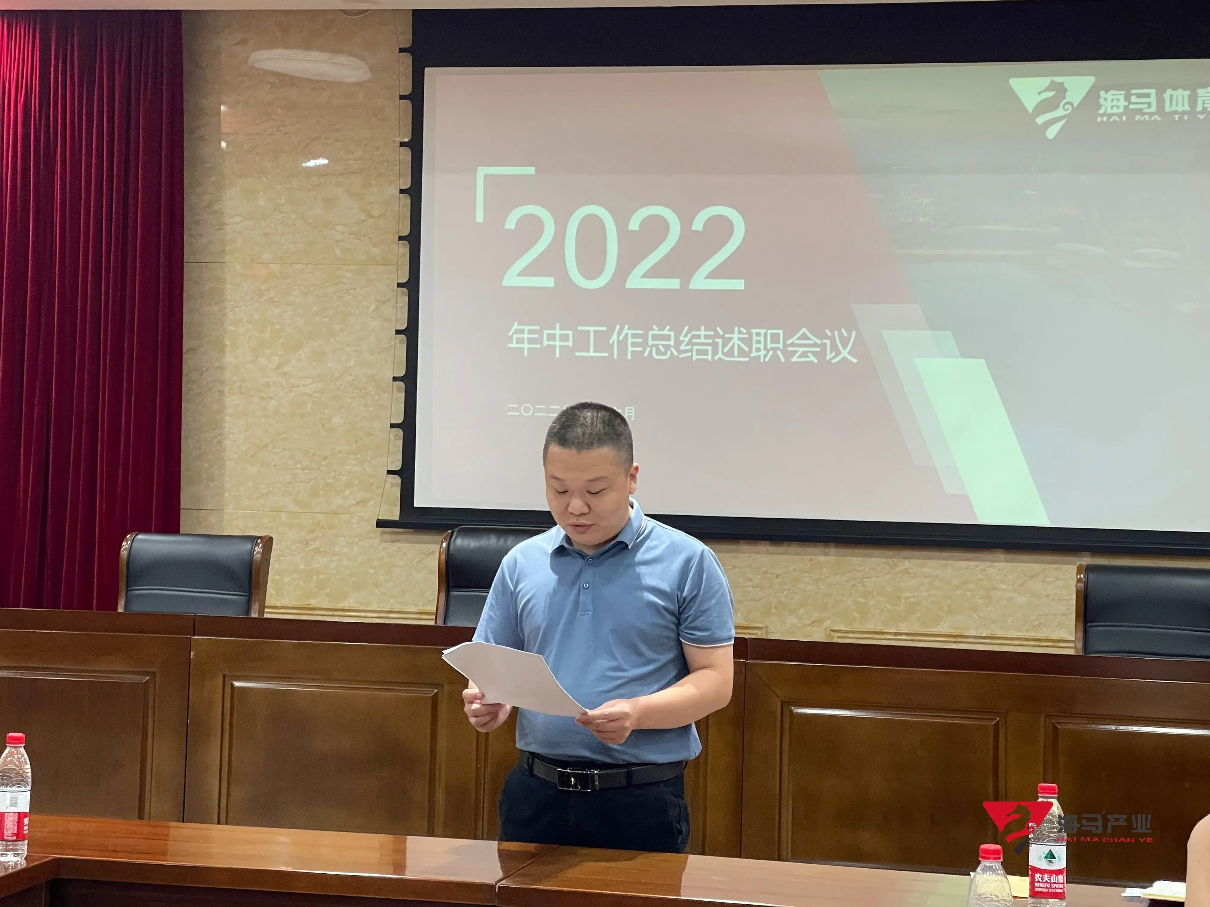 2022年6月29日下午,熊猫体育文化产业集团在山东省体育中心二楼会议室召开年中工作总结述职会议,会议对上半年工作成果进行了总结汇报,并就下半年重点工作进行部署。总经理王海民出席了本次会议。会议由综合管理部负责人王永健主持。